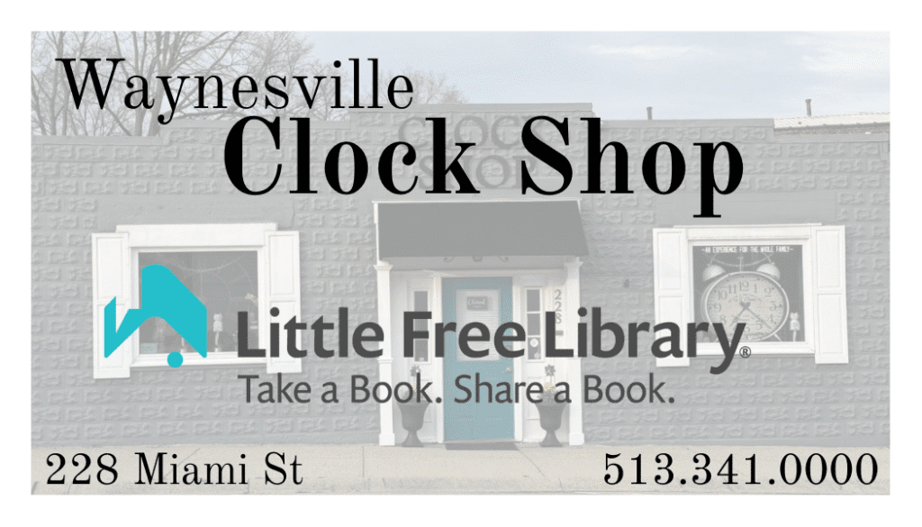 The ribbon will be cut this Saturday, February 28 at 11:30 am at Waynesville Clock Shop, located at 228 Miami Street. But this is not just any Little Free Library. In true Waynesville fashion, it has been thoughtfully designed to reflect the character of its home.